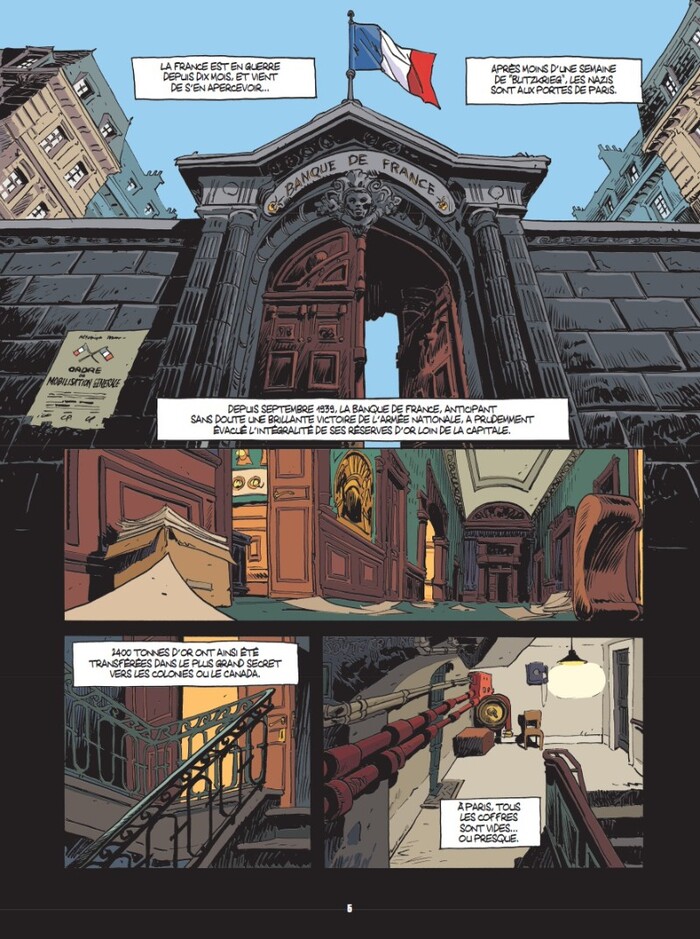Графический роман «Как сколотить состояние в июне 40-ого» имеет весь шарм французской комбинации триллера и военных фильмов, которая процветала в 1960-х и 1970-х годах. Таким образом, первоначальная цель авторов полностью достигнута. Сюжет, конечно, классический: команда грабителей банков (боксер без карьеры, корсиканец с обочины, бывший солдат вермахта и симпатичный новичок с талантом к ювелирной работе) брошена в путешествие типа роуд-муви, с большим количеством острых моментов и драматизма, сопровождаемое множеством взрывов. Противостояние жестких и безжалостных государственных служащих и мелких бандитов, которые столь же типичны, сколь и находчивы, также ласкает французский дух, который в восторге от идеи встать на сторону друзей-разбойников.