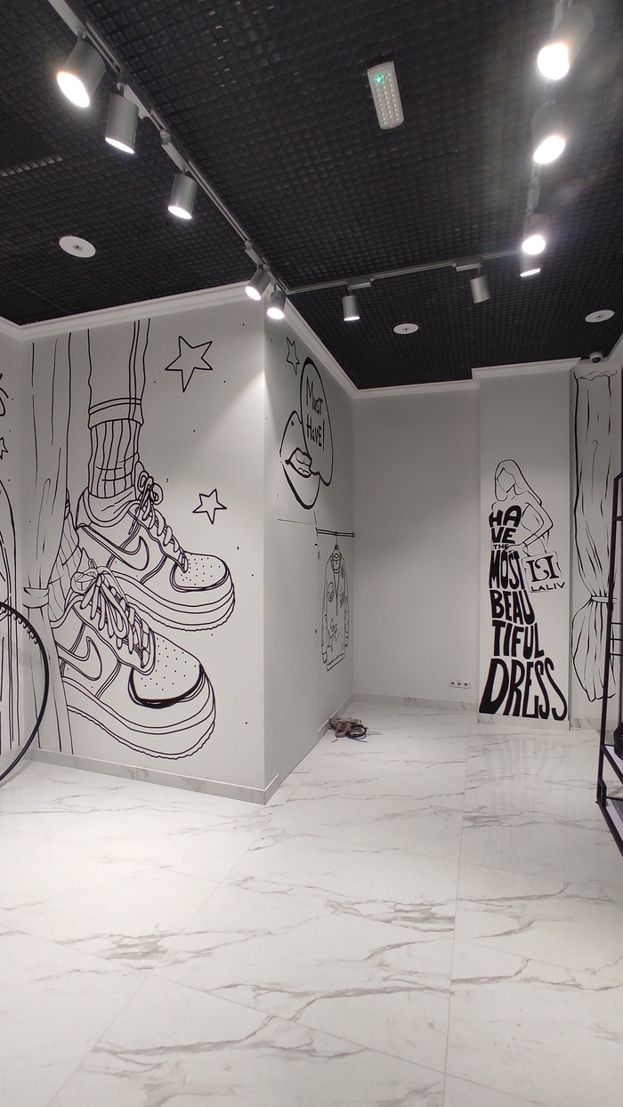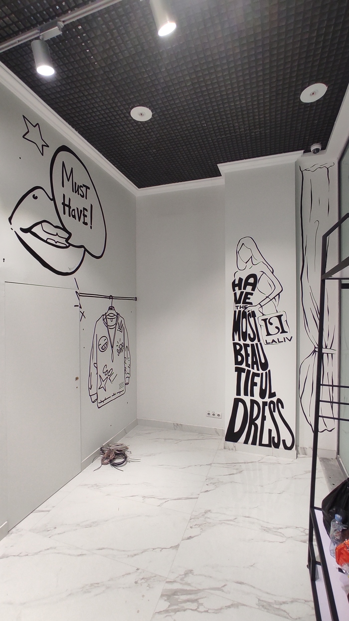 Вот в таком минималистическом стиле попросила меня заказчика расписать ей магазин.