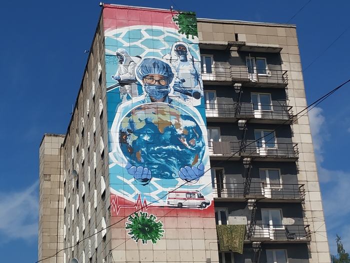 В Перми художник Андрей Катаев завершил создание монументального мурала с изображением коми-пермяцкого богатыря Кудым-Оша. Рисунок появился на фасаде дома по ул. Малкова, 30а.