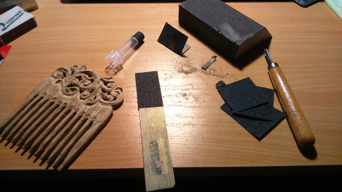 Кажется, уже и этап пропитки позади, однако, тут я неожиданно решил, что гребню не помешала бы еще и восковая пропитка, для пущего закупоривания пор, а значит и лучшего сохранения во влажной среде, для придания матовости поверхности и медового запаха. Насчет последнего я погорячился, запах масла оказался крепче.