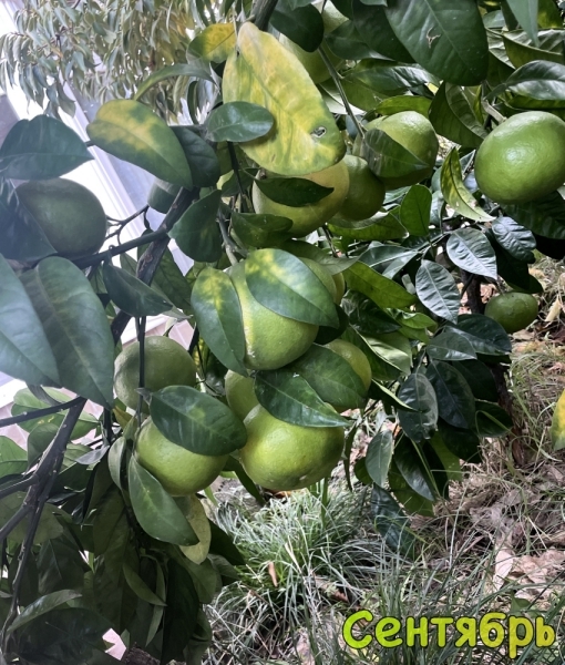 Не знаю, стал бы я вообще «поднимать» тему варенья из грейпфрута, если бы не обнаружилось, что в саду дома, что в Северном Причерноморье, в котором по воле обстоятельств пришлось пожить, имеется вот такой куст. Программа ботанического опознования флоры сказала – грейпфрут/помело. На вкус скорее грейпфрут. Поэтому мы подумали, и я решил – пусть будет грейпфрут.