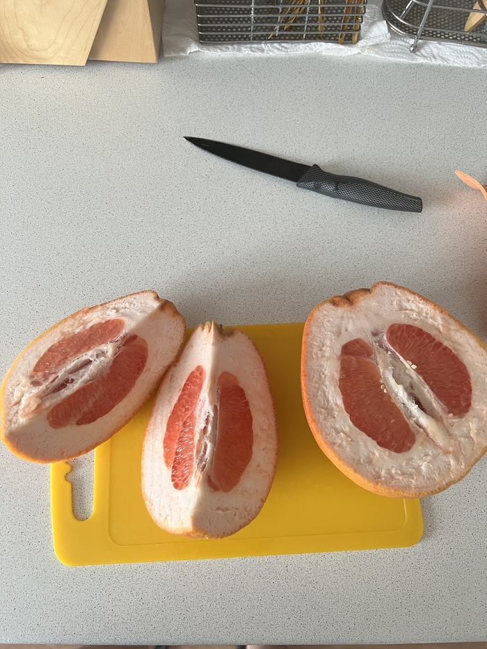 Но у нас грейпфруты доморощенные. Поэтому я их просто хорошо помыл, как водится.