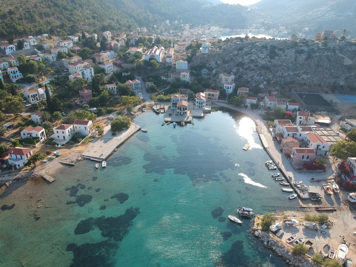 Турецких властей на острове не было, и греки радостно приветствовали наши корабли. Русские моряки использовали обе бухты острова — Аузу и Трио, где были оборудованы стоянки кораблей. Но столицей «губернии» стал город Ауза, построенный русскими на левом берегу одноименной бухты.