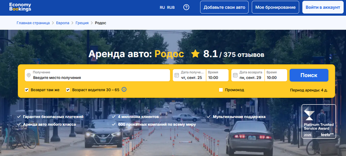 EconomyBookings — это про максимальный охват и много «сетевых» партнёров: удобно, когда хотите предсказуемый стандарт, привычный по Европе. Интерфейс лаконичный, фильтры по классу, коробке, депозиту и страховке — на месте, а итоговая цена обычно совпадает с реальностью на стойке, если не менять опции.
