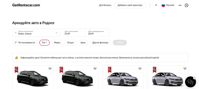 Getrentacar — гибкость оплаты и сценарии «под меня»