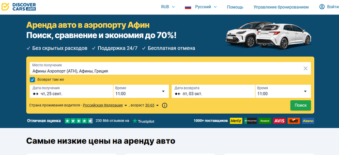 DiscoverCars — старожил среди агрегаторов: большая витрина, удобная сортировка по депозиту, страховкам, политике топлива, рейтингу поставщика. Когда нужна «вторая проверка» цены по Греции, я часто смотрю здесь: именно сравнение «в одной корзине» помогает увидеть, кто перегнул с доплатами, а кто честно играет рынком.