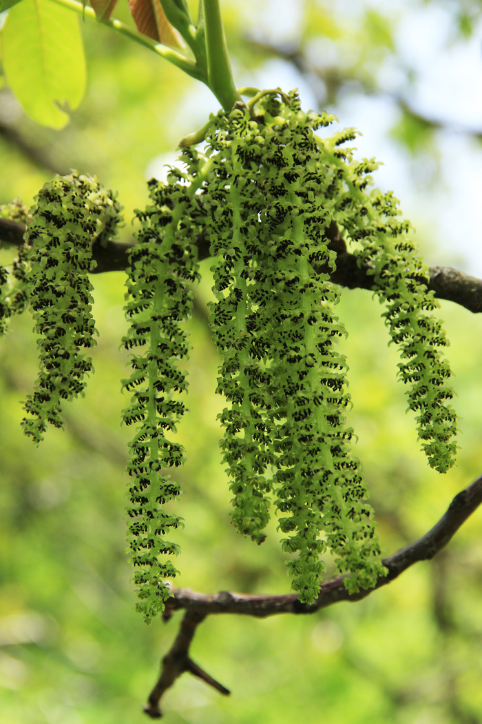 Начало мая, весна в самом разгаре и в это время в горах цветёт грецкий орех. На некоторых ветках уже образовались первые завязи.