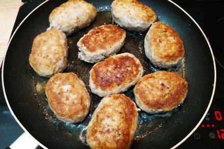 10. Готовые котлетки выкладывайте на сковороду с разогретым растительным маслом и обжаривайте до золотистого цвета.
