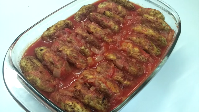 16. Отдельно приготовьте соус-заливку. Смешайте 350 мл воды, 2 столовых ложки томатной пасты и 3 столовых ложки сметаны, посолите по вкусу.