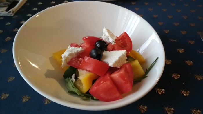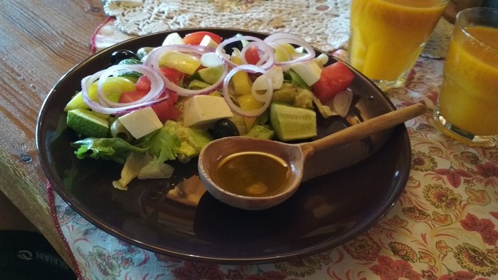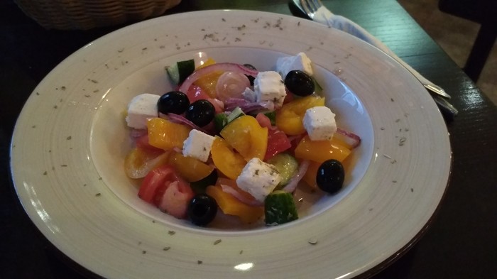 Греческий салат. Получается Необыкновенно вкусный. Секрет здесь в особой заправке, которая придает ему восхитительный вкус и аромат.