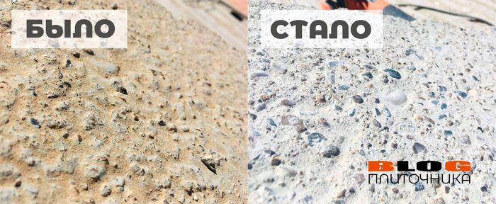 1. Зачищал от налёта, который образовался в результате взаимодействия химии с бетоном (сравнительно фото было/стало покажу чуть ниже). Зачем была нужна химия? Здесь как раз отсылка к грубой ошибке, о которой я упомянул в начале.
