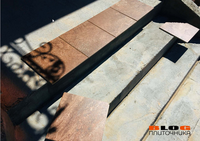 Прежде чем приступить к шлифовке, резке и зачистке мы разложили плитку на ступени, чтобы: