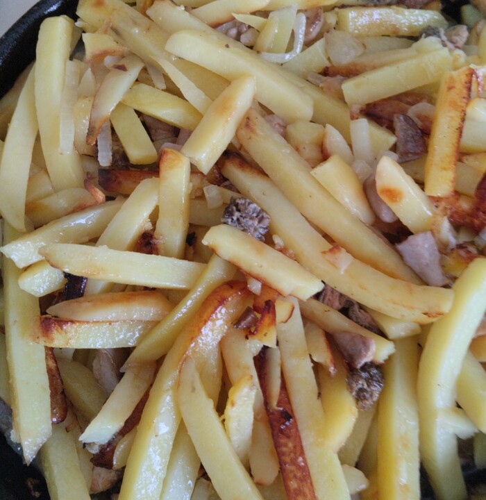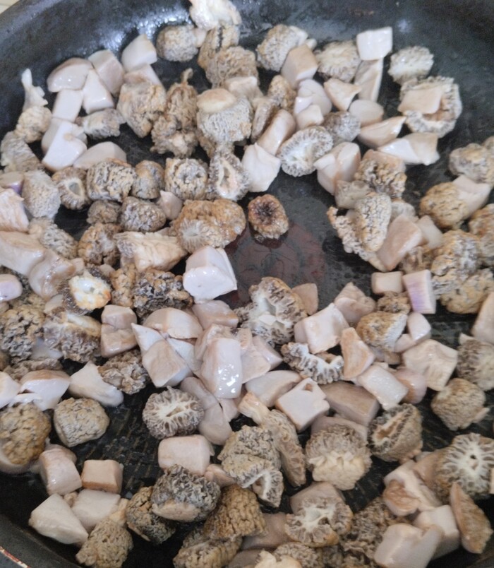 Обжариваем добычу. До золотистого цвета сморчков.