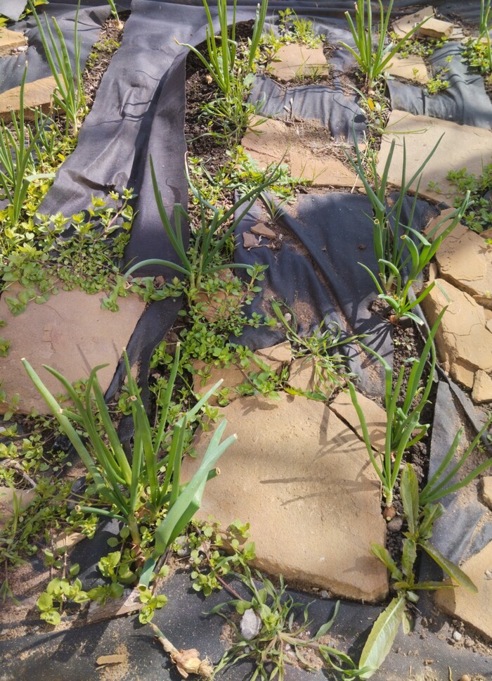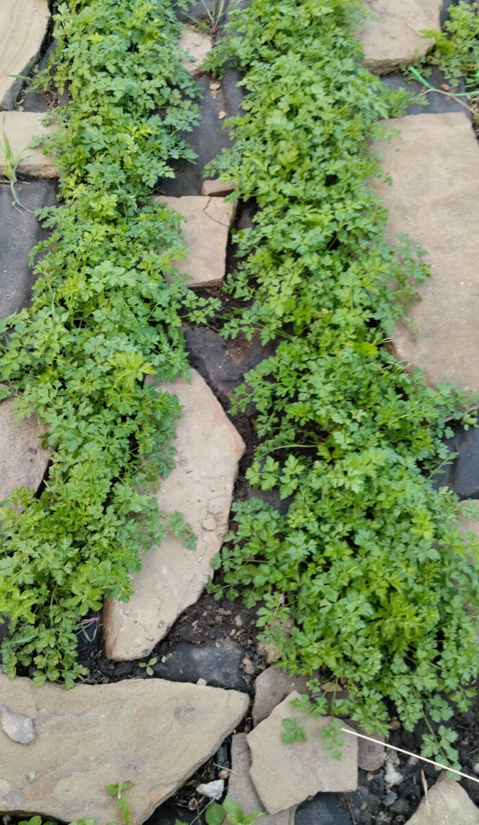 Добываем петрушку и лук. Все растет с прошлого года, новые ещё не сажали.