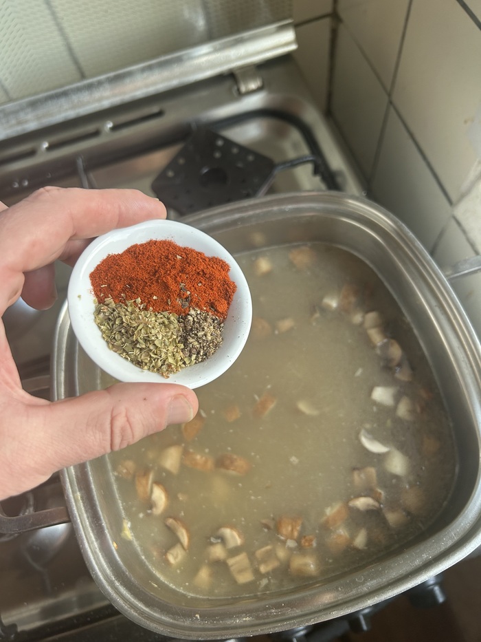 Грибной суп с паприкой и домашней ветчиной