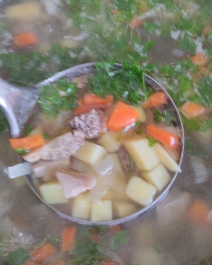 (Шотландцы готовый суп пюрируют блендером, я этого не делала, суп и так получился достаточно густым.)