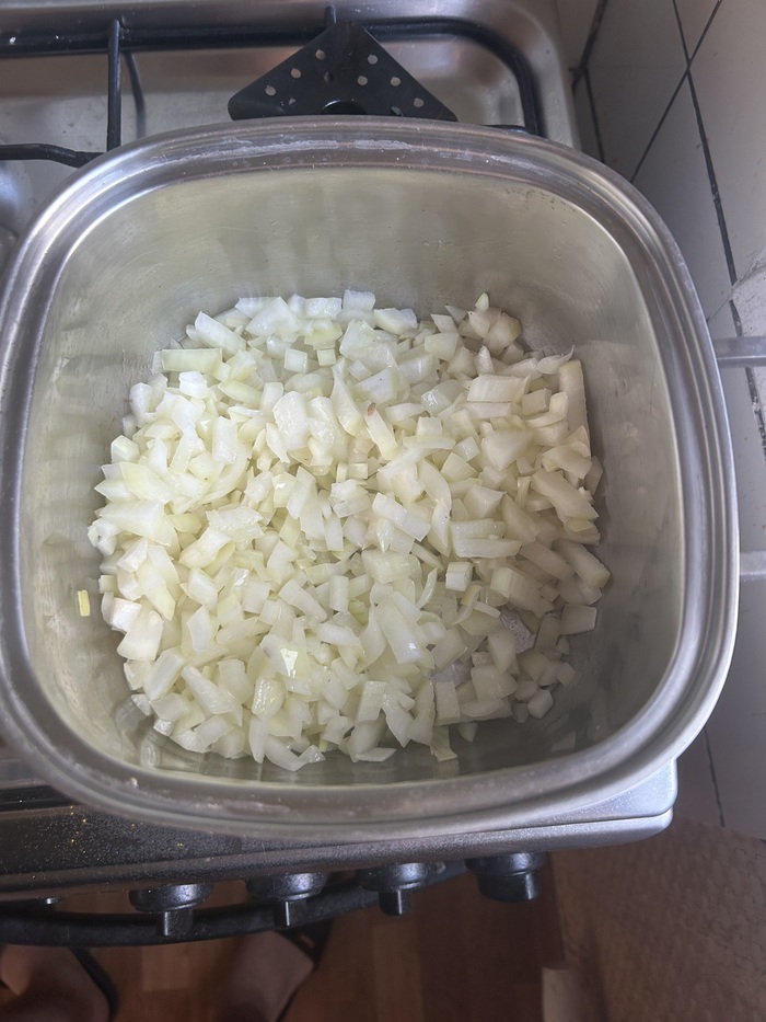 Лук - 2 шт.: просто средний лук, тут шалот был бы круче, но не нашел к сожалению, разницы не заметил в финале.