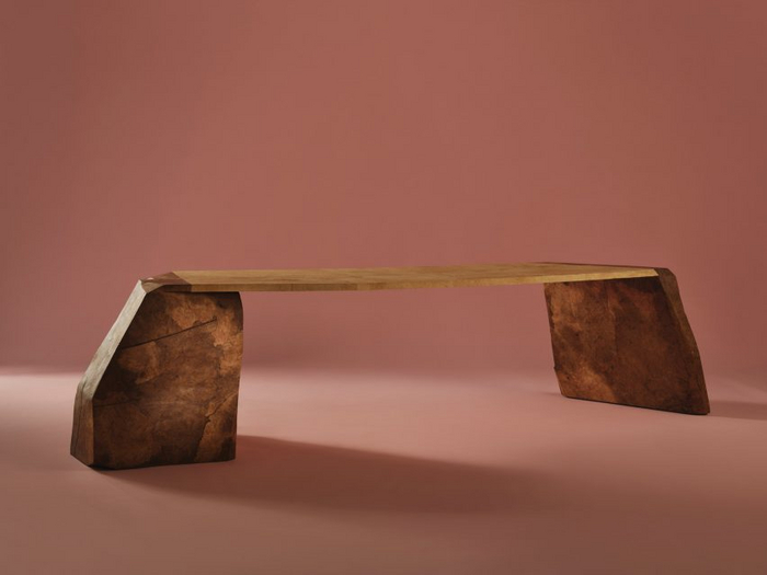 Для письменного стола Undergrowth архитектор и краснодеревщик Энн Ле Корно решила подчеркнуть естественные недостатки, присущие как мицелию, так и древесине мирта. Органические формы стола напоминают грубо обработанные бревна и точеную деревянную черепицу.