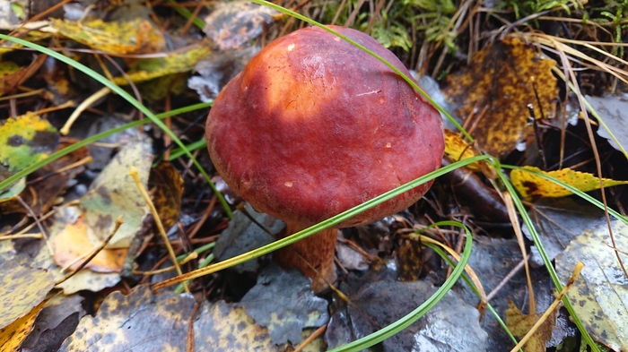 Делаем по бокам надрез ножом. И вставляем туда грибок, ставим пенек. Снизу надрезаем блин с 2-3 сторон чтобы он стоял.