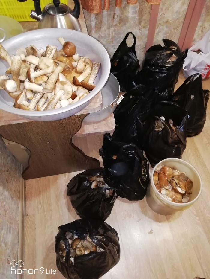 Решили с супругой съездить в лес, на разведку, за грибами. Разведка можно так сказать прошла боем, сейчас меня закидают ссаными тапками за то что сложил грибы в пакеты, но мы с собой брали только одно ведро (ведь поехали на разведку), а пакеты всегда лежат в машине на всякий случай . Теперь до утра придётся перерабатывать весь урожай, но зато на всю зиму запасёмся жареным грибами.