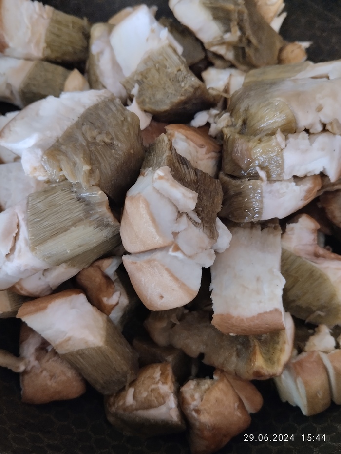 С пяти утра до часу дня, 4 места. 7 белых найдено, взято 0,5 от одного (на фото). Один рыжик, чистый на удивление. Горсть маслят. 300 грамм лисичек (они есть, просто мы опоздали). И валуйчики - каждый десятый только чистый. Спина болит, колени хрустят, но на лице румянец и улыбка)))