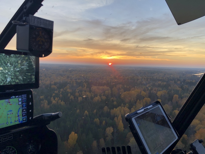 И так… что мы имеем? Один грибник с телефоном в лесу, на месте наряд МЧС с сиреной, два часа совместной работы по выводу пострадавшего из леса и отрицательный результат. Как следствие, к нам приходит заявка на вылет. Экипаж стандартный. Саше добираться сорок минут, я приеду уже через двадцать. Сразу же по прибытии я прошу выкатить из ангара 05790, а сам отправляюсь готовится к вылету. Быстро накидав флайтплан в Garmin Pilot в iPad, я занялся вычислениями топлива с учетом ветра и ветра над точкой вообще. Учет ветра, для нас, очень важная вещь. Вертолет далеко не прост в управлении, как кажется со стороны. Ошибка с ветром на заходе иногда может стоить очень дорого. Поэтому все это просчитывается заранее, чтобы на месте можно было не отвлекаться от ведения поиска и, как говорят, не наломать дров.