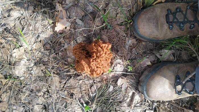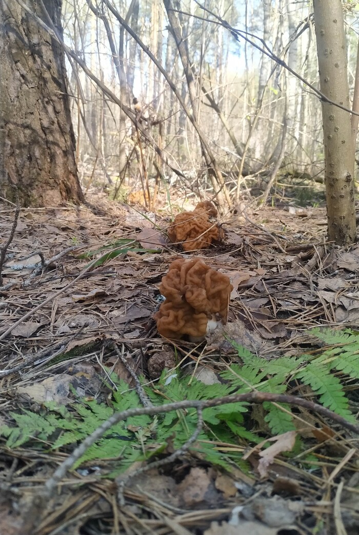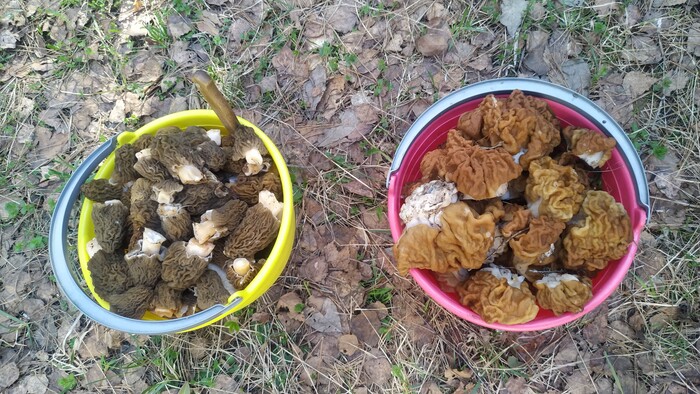Пока я собирал строчки, жена нашла полянку со сморчками.