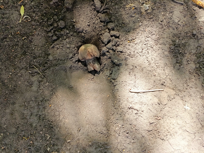 Был в земле полностью. Ну как в земле в старой хвое под огромными соснами. Сначала я подумал, что это цветная копуста, текстура очень похожа.