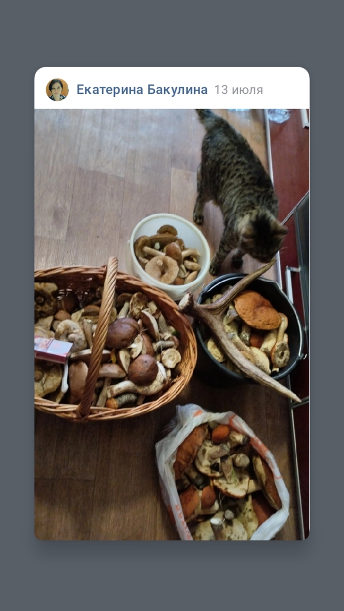 Вот маму взять, к примеру. Грибную эпопею всякий раз инициирует именно она: убеждает меня и мужа приехать в деревню, выдаёт каждому пластиковое ведёрко, ведёт нас в те самые потайные «грибные» места, указывает с которой стороны обходить лесные болотца, запрещает сидеть на земле и есть с кустов немытые ягоды… В общем, руководит и направляет. На самом деле, ей просто очень хочется, чтобы мы были с ней и занимались именно тем, что ей нравится. В основном, ей мало что нравится по жизни, кроме прогулок и сериалов. Вот она и привлекает нас к таким вот лесным прогулкам, под предлогом сбора грибов. Ей как будто бы совестно просто пойти гулять, ей нужен весомый повод и вот он – грибы.