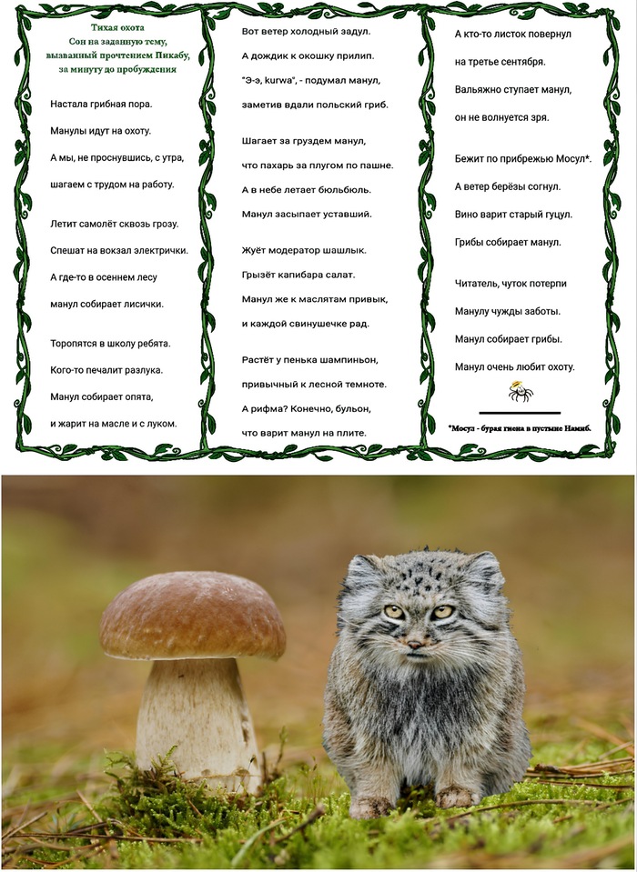 Итак. Приём работ на конкурс под названием "Манулы и грибы", который проводился в нашем сообществе завершён.