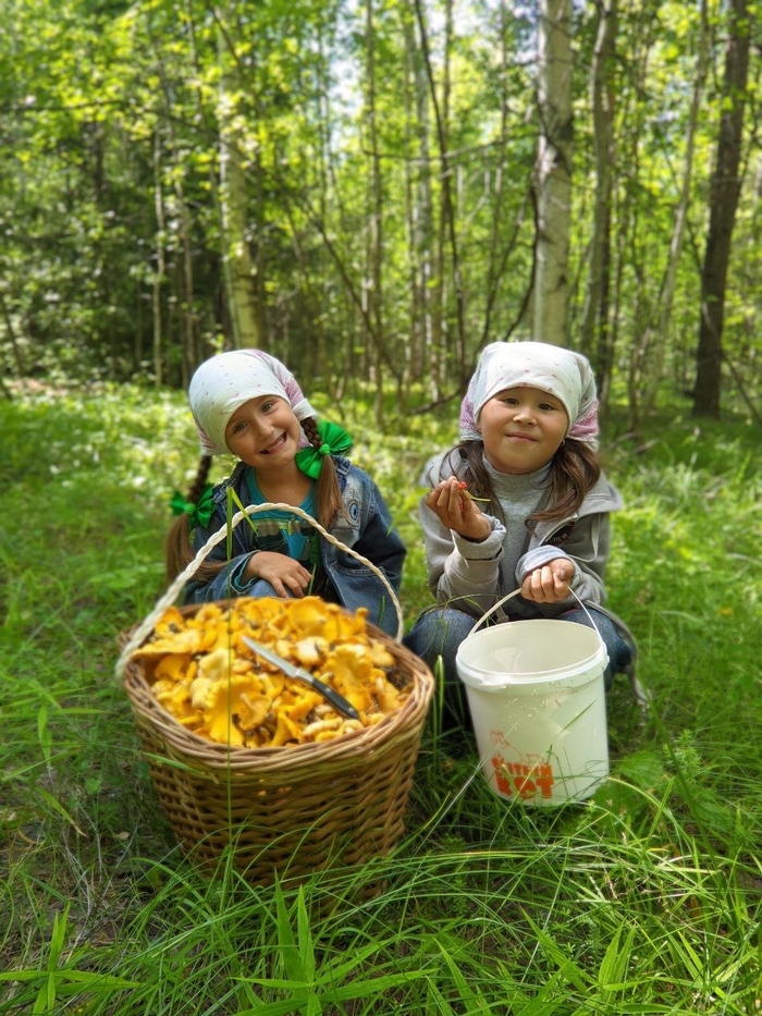 Утром муж поехал на велике разведать, есть ли грибы. А они есть! Позвал нас на подмогу.