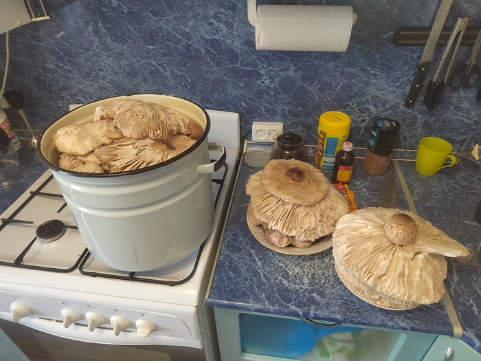 Решил поделиться своей добычей, это первый раз в моей жизни когда я нашёл столько грибов зонтиков.