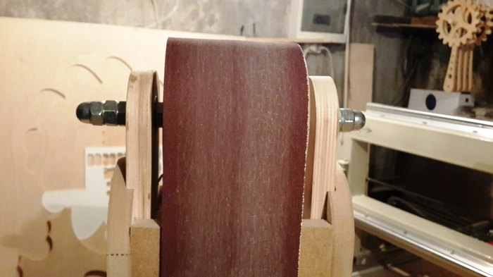 Мне была интересна идея превратить данный станок в многофункциональное приспособление, путем установки различных модулей. В частности, установка шлифовального модуля потребует замены приводного ролика на «болгарке» со штатного на доработанный. Доработка заключается в наличие вала М14 под опорную тарелку.