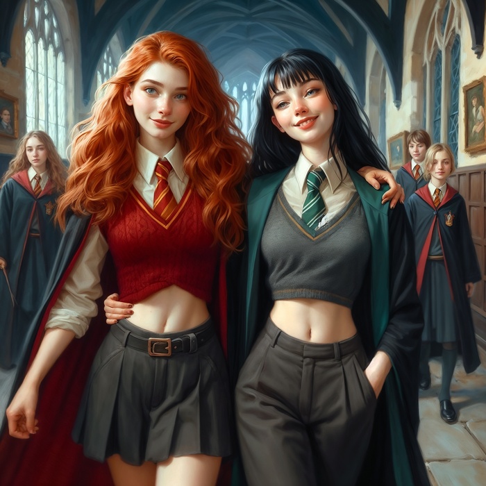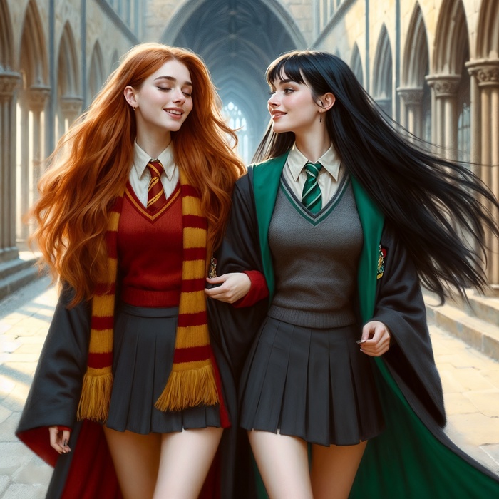 Гарри и Драко попали на соперничающие факультеты - Гриффиндор и Слизерин, - что уже предопределило их борьбу. По своим способностям Драко превосходил Гарри, его можно назвать более умными прилежным студентом.
