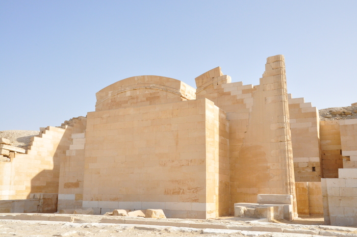 Официально одна из первых и древнейших Египетских пирамид мастаб. Если приглядеться то видно что сначала была маленькая всего в одну ступень мастаба - ее очертания выделяются в правом нижнем углу более четкой кладкой в отличии от остальной кустарной, по сути просто наваленной сверху ступенчатой кучей камней.