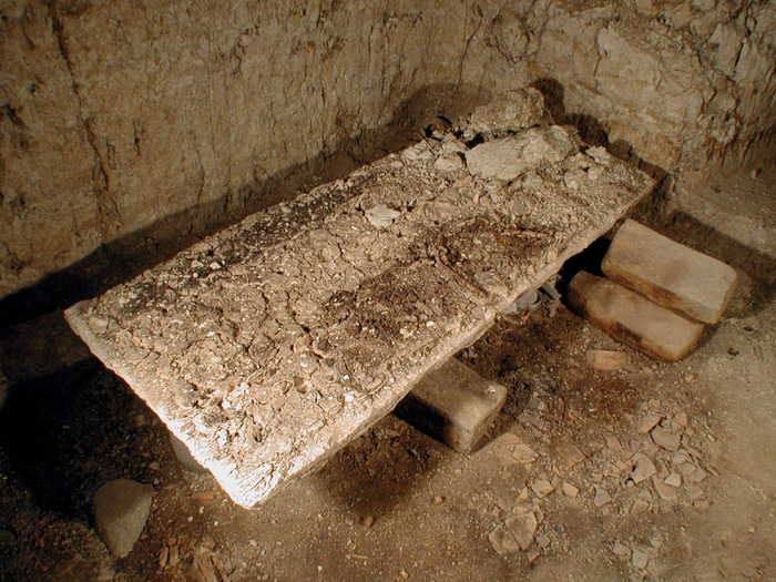 Иллюстрация 7. Каменный стол с останками, покрытыми окаменевшей тканью