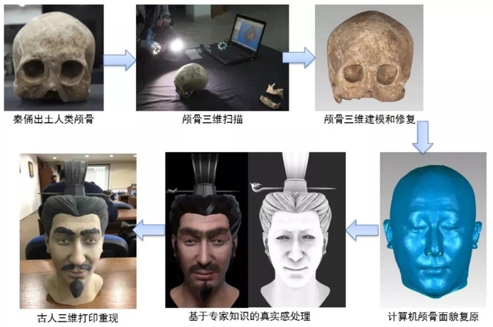 Недавно специалисты-реконструкторы воссоздали внешность мужчины – вероятного сына Цин Шихуанди и молодой женщины – одной из наложниц Великого Императора.Женщине лет двадцати перед смертью сломали руки и ноги. Судя по богатству инвентаря, она могла быть женой или важной наложницей правителя. У погребенной большие глаза и выступающий нос. Исследователи предположили, что она могла иметь среднеазиатское или европейское происхождение.