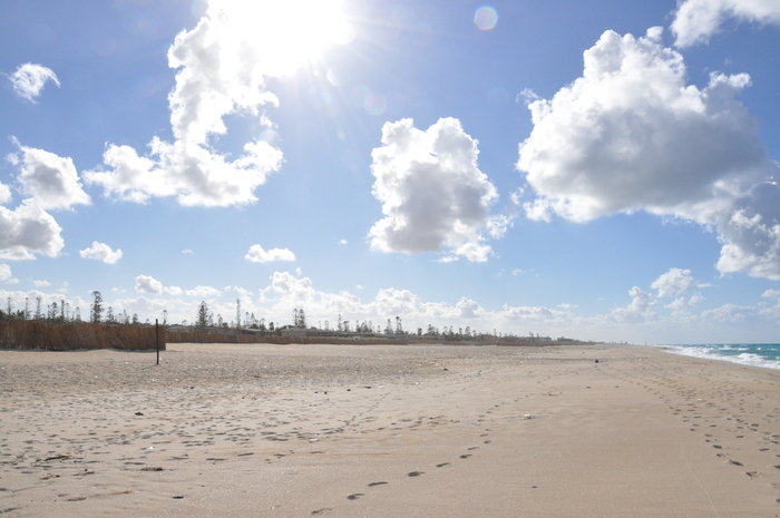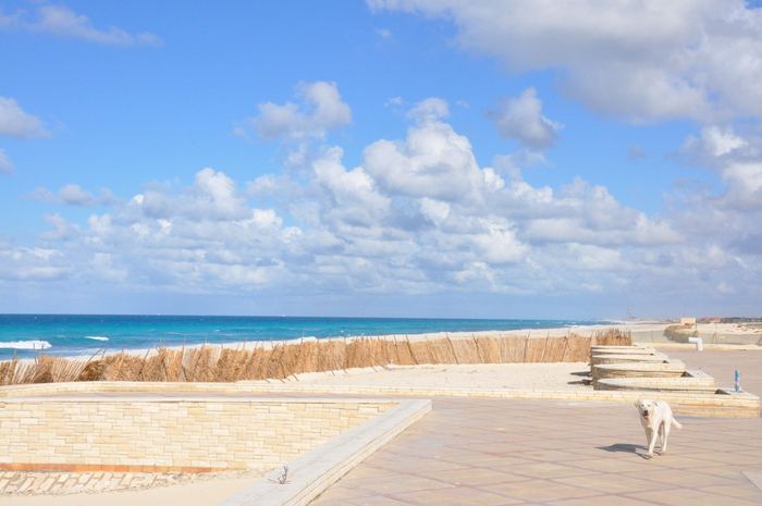 Пустынный средиземноморский пляж в пригороде Александрии, купаться еще холодно - по этому никого. На заднем фоне виднеются деревья очень похожие на гигантские побеги укропа - мне сказали что это такие пальмы - я не знаю верить или нет - я не ботаник совсем, но выглядят красиво.