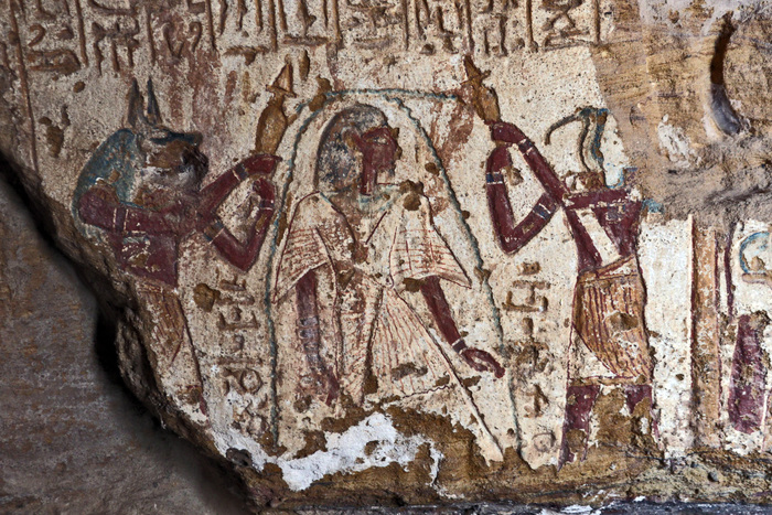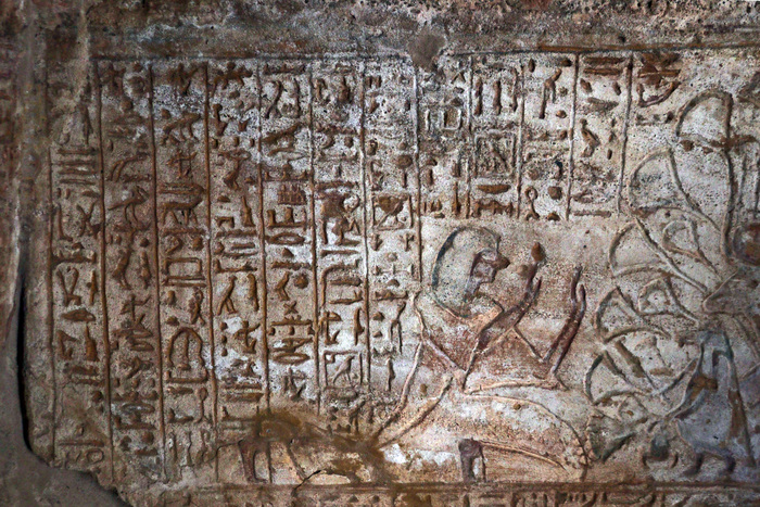 Известно, что после обнаружения исследователями, часовня потеряла больше половины своих росписей. Среди них, сцена с Судом Осириса, на котором присутствует чудовище Аммит. Обитающее в загробном мире и несуществующее в реальности животное состоит из трех самых свирепых хищников. Про эту милашку у меня был отдельный большой информативный фильм.