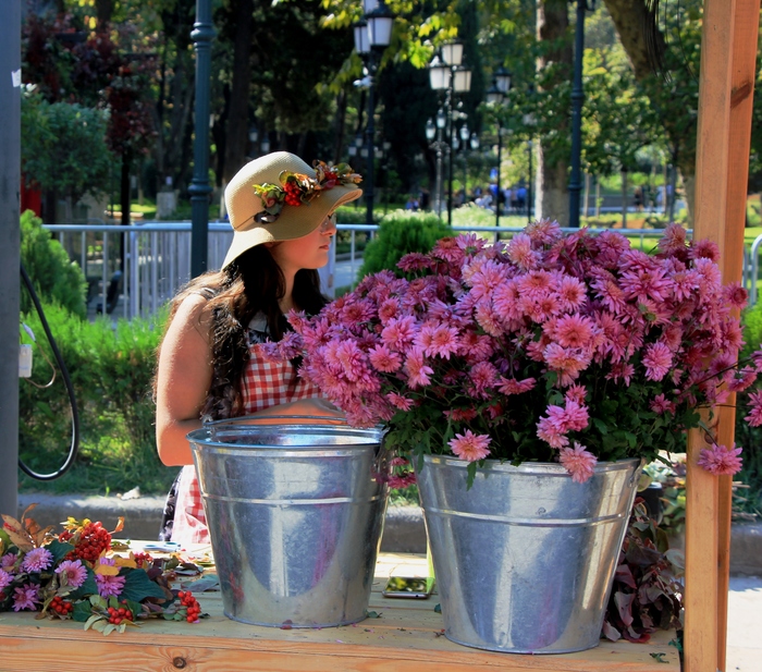 Что же такое традиционная грузинская Тбилисоба глазами туриста, я попробую вкратце передать вам далее. Конечно же, первым делом я спросила у самих грузин, куда бы они порекомендовали нам отправиться, чтобы понять суть праздника, и они были в этом плане достаточно единодушны - это Парк Рике на левом берегу реки Куры, через которую перекинут довольно оригинально оформленный стеклянный мост, и мы последовали их совету. Если кратко, то народные гуляния там носили достаточно привычный нам характер - сцена для выступлений, куча развлечений для детей и взрослых, торговые ряды и фургончики с едой, ровно все то, что вы можете увидеть на День города в главном парке любого крупного города. Танцы и музыка на площадях тоже как-то не произвели на меня особого впечатления (хотя играли, надо признать, классно так, с душой), чуть большее произвели фудкорты (мы совершили прямо таки преступление, не попробовав шашлык, но после визита в заведение в стиле в гостях у грузинской бабушки, мы были не в состоянии впихнуть в себя решительно больше ничего, только прикупили домашнее вино), но вот когда мы оказались в ущелье Легвтахеви с водопадом, это действительно был повод ахнуть от окружающей красоты - корзины с цветами у воды, театрализованные сценки и в целом невероятная эстетика данного места. Там же мы попробовали местный деликатес - мороженое со вкусом вина, очень необычно.