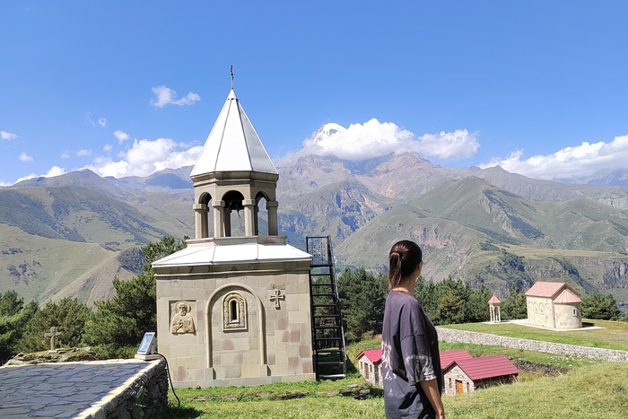 Если повезёт с погодой, то вам откроется прекрасный вид на гору Казбек и ближайшие окрестности.