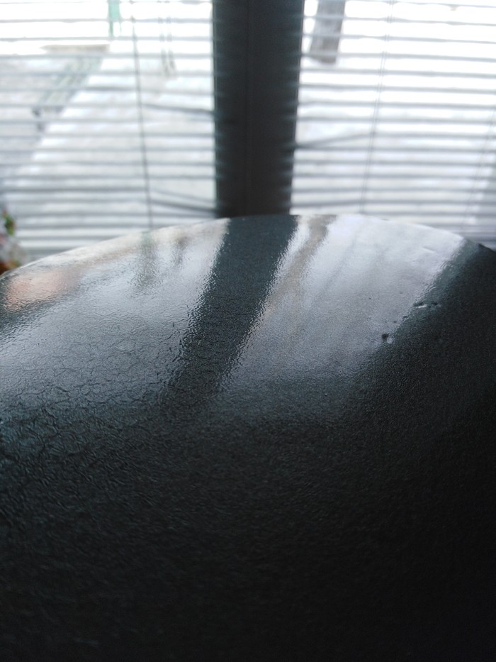 Да, поверхность не без изъянов: есть ямки, в одном месте краска собралась сеточкой, но работу над ошибками я провел - к слою шпакли и её затирки относиться более старательно, и красить только в теплом месте.