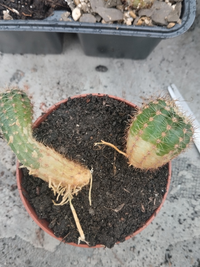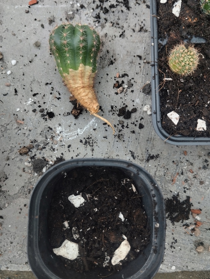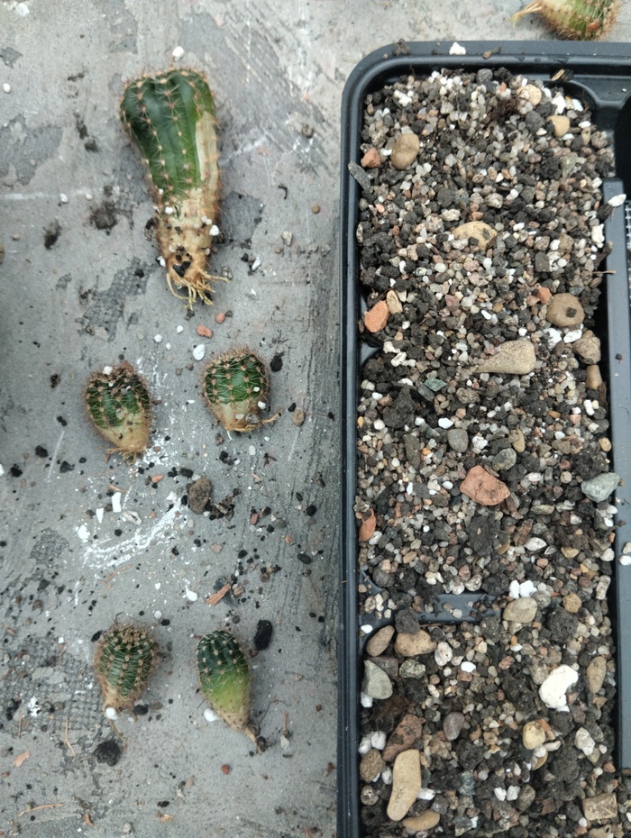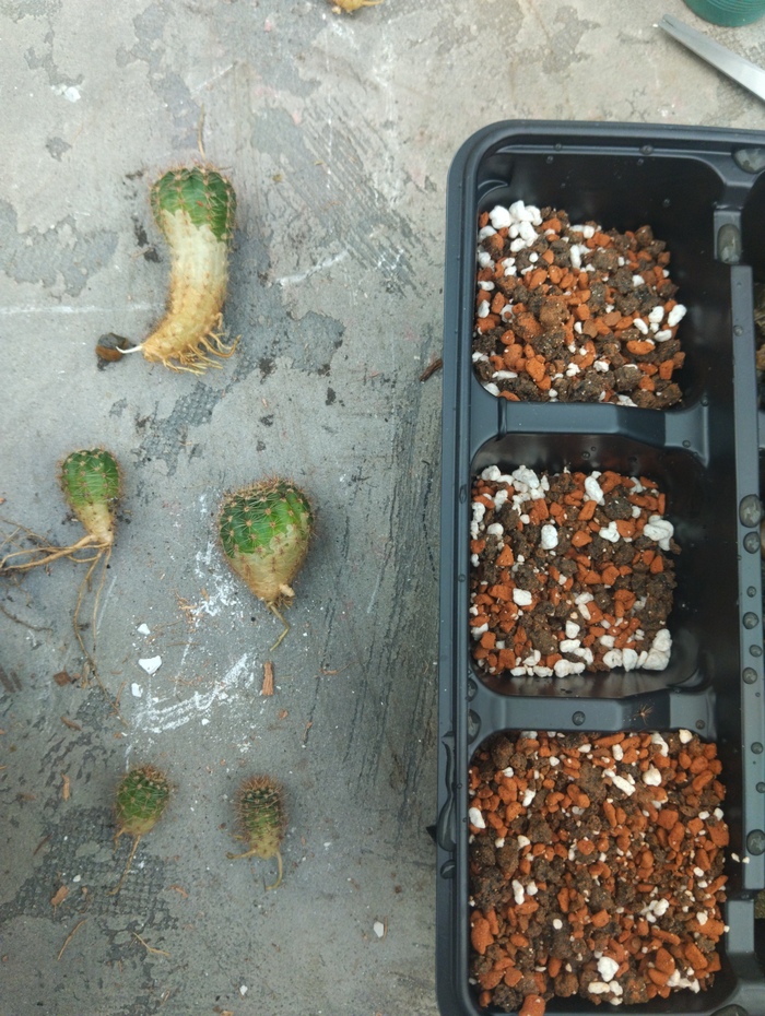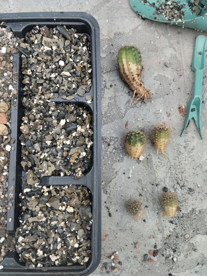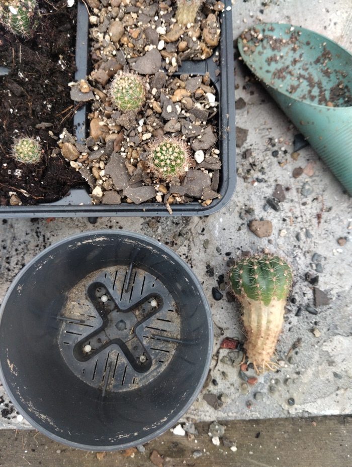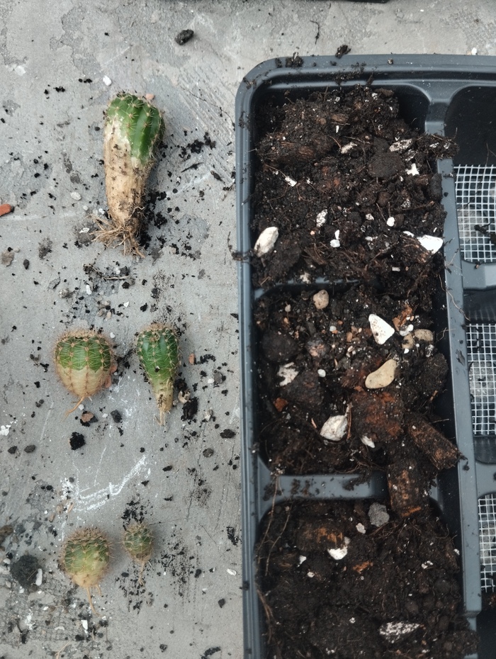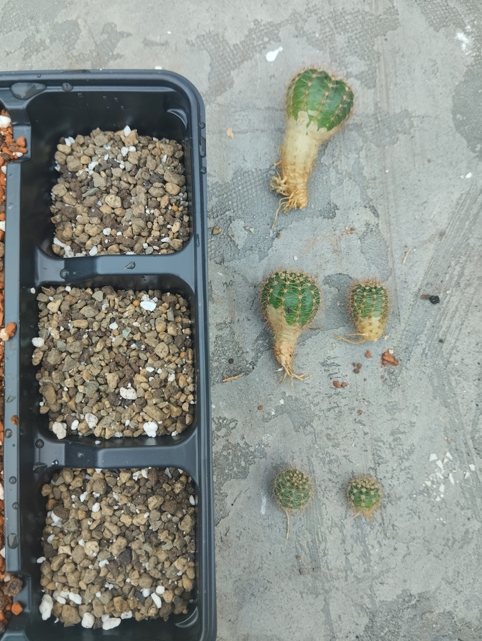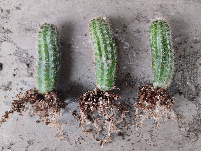 На фото три взрослых кактуса, потому что один уже забрал для прививки в качестве подвоя.
