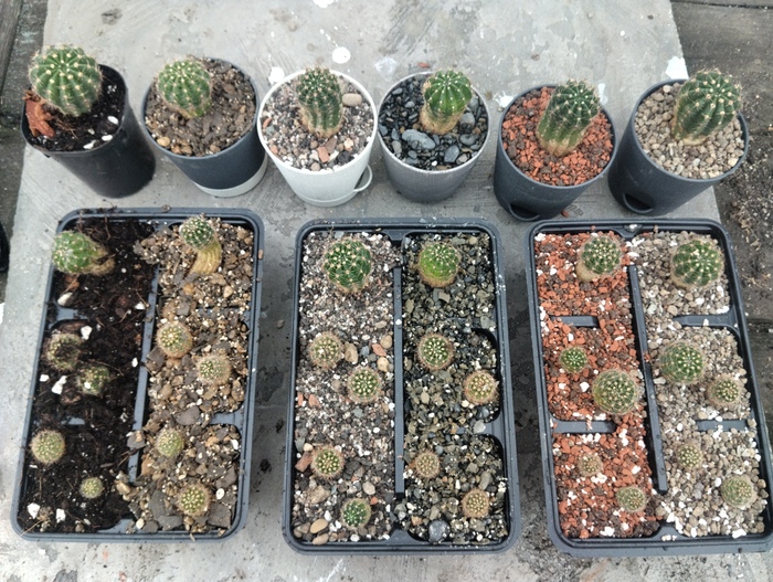 У меня были прекрасные образцы астрофитумов, которые я попытался распределить равномерно и высадить в разные грунты. Извиняйте, но их было мало, да и рисковать недешевыми кактусами не очень хочется. Так что будет всего 3 грунта.