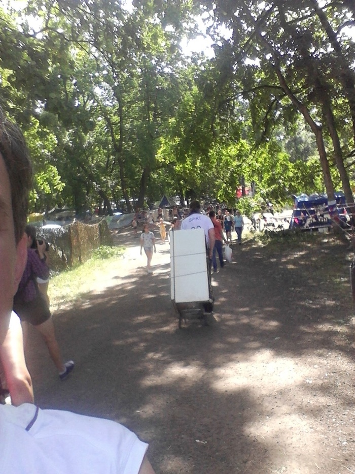 За 15 лет на Грушинском фестивале, каких только кадров не насмотрелся и чего только с собой не притаскивали. Но мне кажется этот чел вошел в десятку самых оригинальных - притащил с собой холодильник.