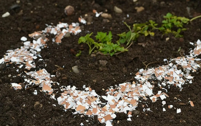 Грубо измельченная яичная скорлупа может служить барьером для насекомых. Рассыпьте ее по грядкам, чтобы защитить посевы от слизней. При добавлении скорлупы в почву при посадке, она отпугивает медведку своими острыми краями. Кроты также избегают таких участков.