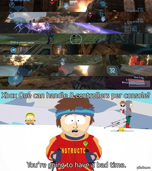 ALTi564 Некстген как он есть 12 лет назад Недавно стало известно, что нова приставка Xbox One от Microsoft будет поддерживать до 8 геймпадов одновременно. Ну а выше вы видите что из этого получится. Nextgen Правда Грядущее