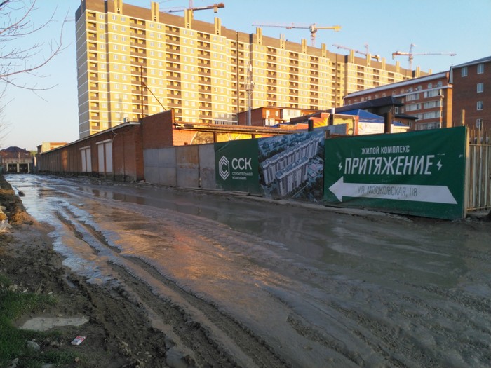 СК ССК строит комплекс. Здесь курсируют грузовые автомобили с материалами для стройки. Вся грязь тащиться со стройки на проезжую часть.