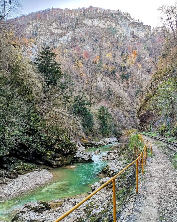 В начале было грустно и холодно, но потом... Солнце стало аккуратно заходить в ущелье, чем его преобразило и нас согрело.
