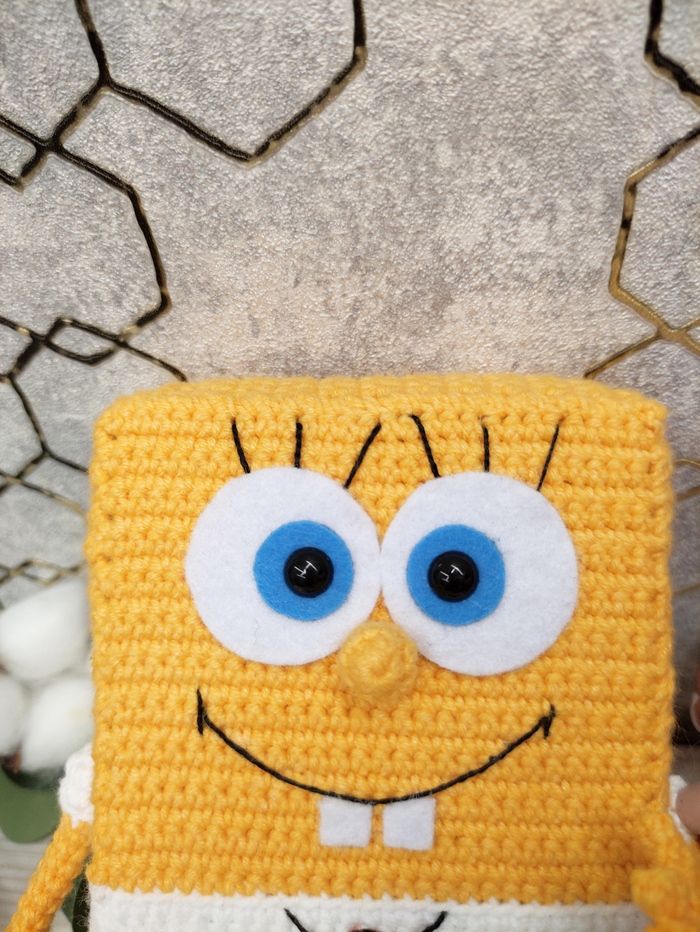 Высота игрушки 18 см. Пряжа акрил+хлопок. Глаза, зубы и галстук из фетра.